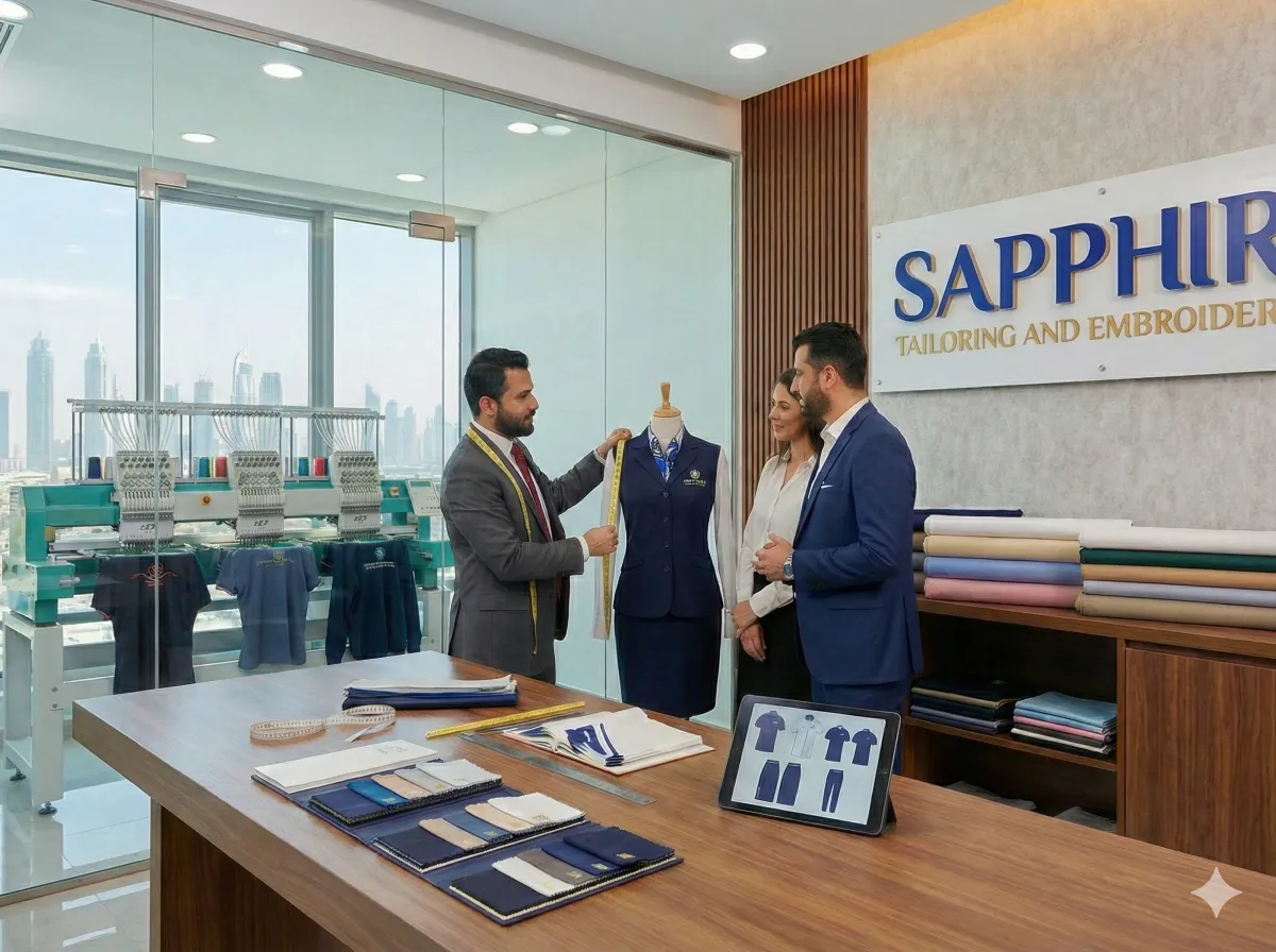 Sapphire Tailoring and Embroidery L.L.C is Dubai’s premier provider of bespoke corporate uniforms and certified safety workwear. We help businesses build their brand identity through quality apparel.