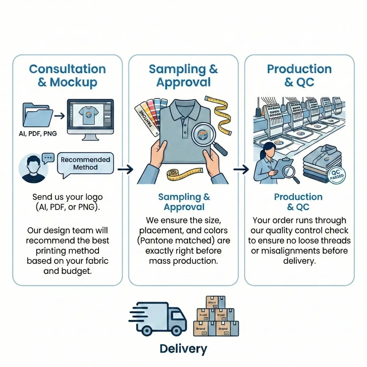 We handle the details so you don't have to. Our branding team advises on the best application method for every material to ensure your logo looks crisp, professional, and durable.