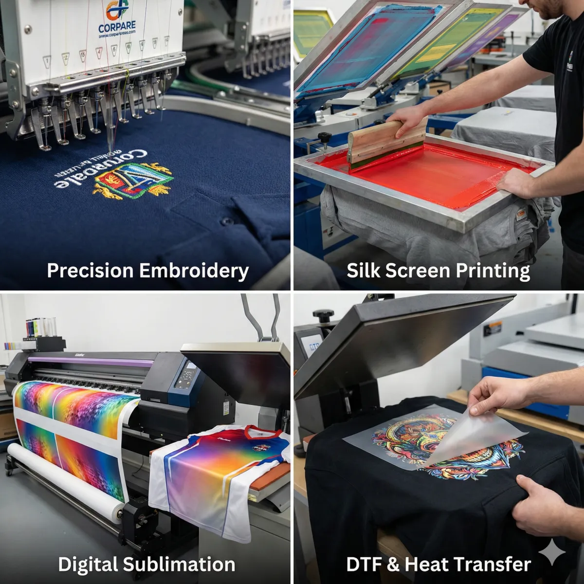 Applying a logo to a garment isn't just decoration, it’s engineering. Different fabrics require different techniques to ensure longevity. At Sapphire Uniforms, we combine state-of-the-art machinery with expert craftsmanship to deliver branding that withstands the harsh Dubai heat and rigorous industrial washing.