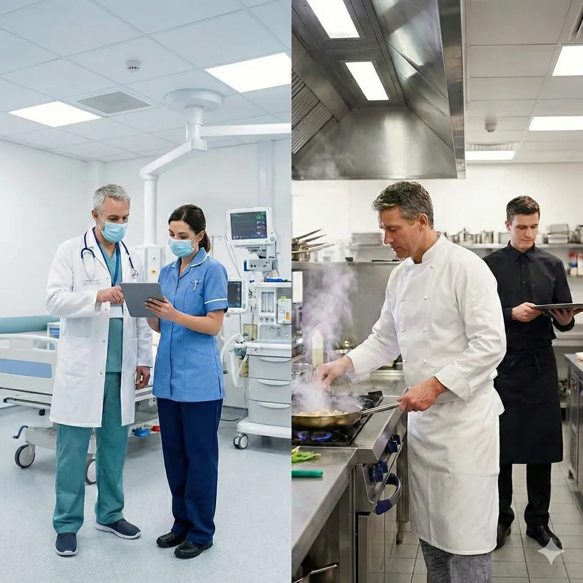 Hygiene Meets Durability. From the sterile environment of a hospital to the heat of a commercial kitchen, our uniforms are built to perform.